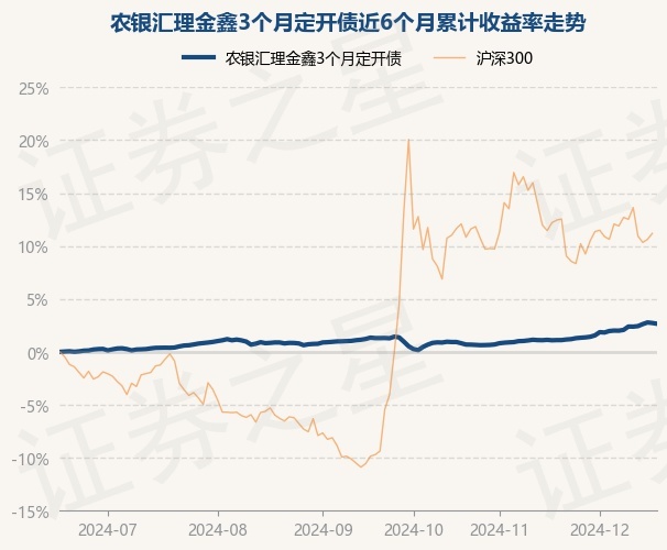 证券之星消息,12月18日,农银汇理金鑫3个月定开债最新单位净值为1.2443元,累计净值为1.3263元,较前一交易日下跌0.07%。历史数据显示该基金近1个月上涨1.54%,近3个月上涨1.29%,近6个月上涨2.66%,近1年上涨6.52%。该基金近6个月的累计收益率走势如下图: