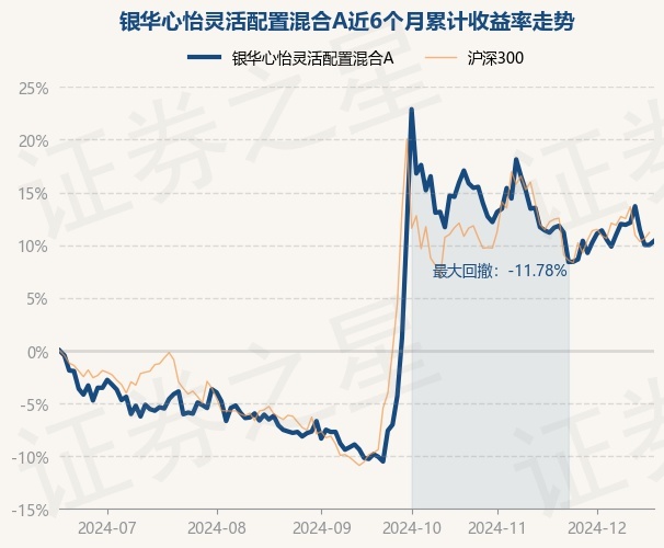 证券之星消息,12月18日,银华心怡灵活配置混合A最新单位净值为2.3913元,累计净值为2.5643元,较前一交易日上涨0.34%。历史数据显示该基金近1个月下跌0.71%,近3个月上涨23.02%,近6个月上涨10.39%,近1年上涨7.04%。该基金近6个月的累计收益率走势如下图: