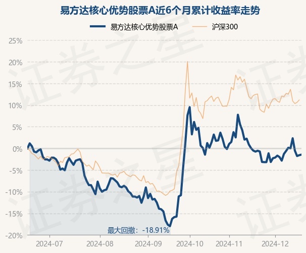 证券之星消息,12月18日,易方达核心优势股票A最新单位净值为0.6928元,累计净值为0.6928元,较前一交易日上涨0.13%。历史数据显示该基金近1个月下跌0.94%,近3个月上涨20.15%,近6个月下跌1.45%,近1年上涨8.81%。该基金近6个月的累计收益率走势如下图:
