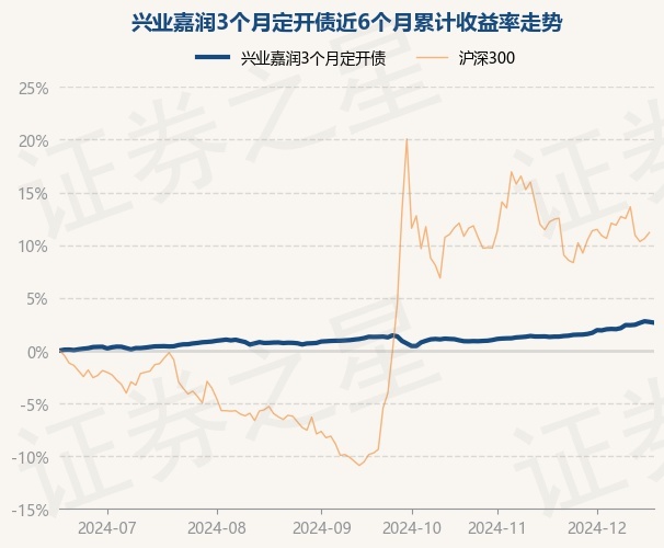 兴业嘉润3个月定开债为债券型-长债基金,根据最新一期基金季报显示,该基金资产配置:无股票类资产,债券占净值比135.66%,现金占净值比0.44%。
