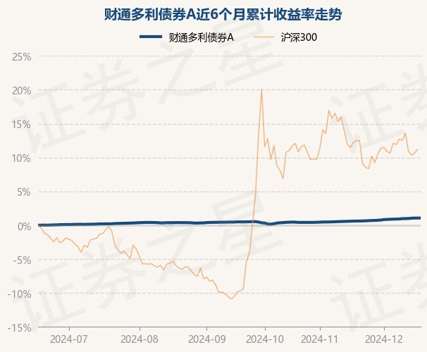 证券之星消息,12月18日,财通多利债券A最新单位净值为1.1371元,累计净值为1.1371元,较前一交易日上涨0.0%。历史数据显示该基金近1个月上涨0.45%,近3个月上涨0.56%,近6个月上涨1.06%,近1年上涨2.74%。该基金近6个月的累计收益率走势如下图: