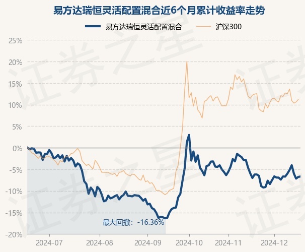 证券之星消息,12月18日,易方达瑞恒灵活配置混合最新单位净值为2.3446元,累计净值为2.3446元,较前一交易日上涨0.11%。历史数据显示该基金近1个月上涨0.37%,近3个月上涨9.81%,近6个月下跌6.66%,近1年上涨4.2%。该基金近6个月的累计收益率走势如下图: