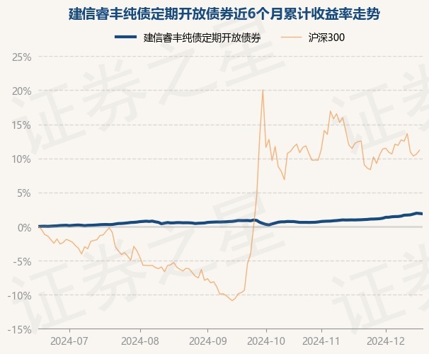 证券之星消息,12月18日,建信睿丰纯债定期开放债券最新单位净值为1.0457元,累计净值为1.2504元,较前一交易日下跌0.05%。历史数据显示该基金近1个月上涨0.9%,近3个月上涨0.98%,近6个月上涨1.86%,近1年上涨4.68%。该基金近6个月的累计收益率走势如下图: