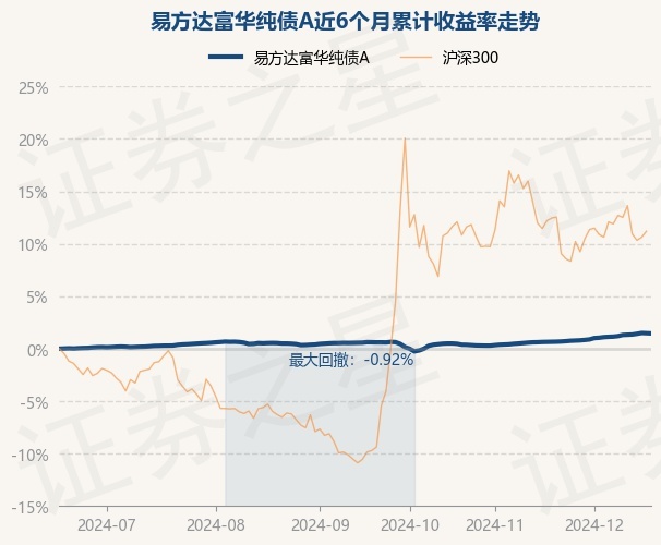 证券之星消息,12月18日,易方达富华纯债A最新单位净值为1.0283元,累计净值为1.1435元,较前一交易日下跌0.02%。历史数据显示该基金近1个月上涨0.8%,近3个月上涨0.83%,近6个月上涨1.46%,近1年上涨4.34%。该基金近6个月的累计收益率走势如下图:
