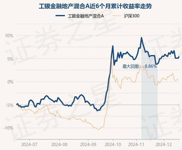 证券之星消息,12月18日,工银金融地产混合A最新单位净值为2.677元,累计净值为3.721元,较前一交易日上涨0.64%。历史数据显示该基金近1个月下跌0.26%,近3个月上涨22.24%,近6个月上涨20.86%,近1年上涨34.86%。该基金近6个月的累计收益率走势如下图: