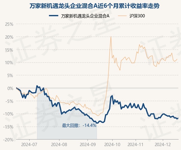 证券之星消息,12月18日,万家新机遇龙头企业混合A最新单位净值为1.6409元,累计净值为2.4509元,较前一交易日上涨0.31%。历史数据显示该基金近1个月下跌0.92%,近3个月上涨1.35%,近6个月下跌11.77%,近1年下跌2.46%。该基金近6个月的累计收益率走势如下图: