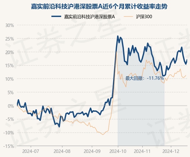 证券之星消息,12月18日,嘉实前沿科技沪港深股票A最新单位净值为1.5119元,累计净值为1.5119元,较前一交易日上涨1.34%。历史数据显示该基金近1个月上涨3.54%,近3个月上涨15.6%,近6个月上涨16.96%,近1年下跌0.68%。该基金近6个月的累计收益率走势如下图: