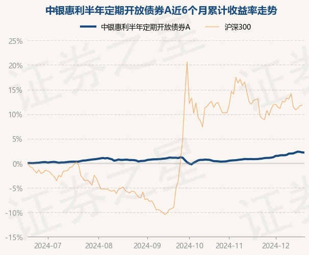 证券之星消息,12月19日,中银惠利半年定期开放债券A最新单位净值为1.1225元,累计净值为1.5823元,较前一交易日下跌0.03%。历史数据显示该基金近1个月上涨1.32%,近3个月上涨1.04%,近6个月上涨2.16%,近1年上涨4.85%。该基金近6个月的累计收益率走势如下图: