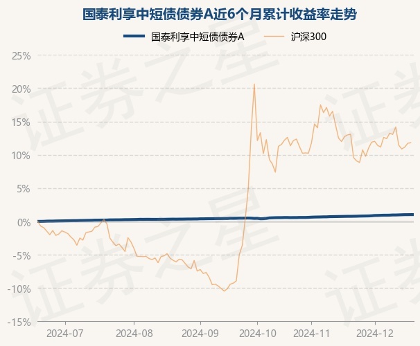 证券之星消息,12月19日,国泰利享中短债债券A最新单位净值为1.1991元,累计净值为1.1991元,较前一交易日上涨0.0%。历史数据显示该基金近1个月上涨0.26%,近3个月上涨0.56%,近6个月上涨1.02%,近1年上涨2.66%。该基金近6个月的累计收益率走势如下图: