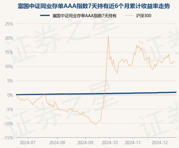证券之星消息,12月19日,富国中证同业存单AAA指数7天持有最新单位净值为1.0722元,累计净值为1.0722元,较前一交易日上涨0.01%。历史数据显示该基金近1个月上涨0.21%,近3个月上涨0.48%,近6个月上涨0.85%,近1年上涨2.26%。该基金近6个月的累计收益率走势如下图: