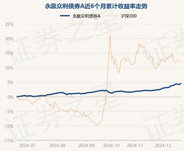 证券之星消息,12月20日,永赢众利债券A最新单位净值为1.1846元,累计净值为1.2421元,较前一交易日上涨0.25%。历史数据显示该基金近1个月上涨2.43%,近3个月上涨2.42%,近6个月上涨4.55%,近1年上涨8.63%。该基金近6个月的累计收益率走势如下图: