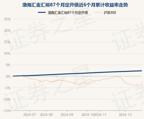证券之星消息,12月20日,渤海汇金汇裕87个月定开债最新单位净值为1.0548元,累计净值为1.1703元,较前一交易日上涨0.09%。历史数据显示该基金近1个月上涨0.41%,近3个月上涨1.05%,近6个月上涨2.2%,近1年上涨4.3%。该基金近6个月的累计收益率走势如下图: