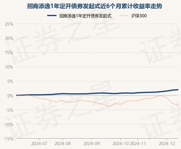证券之星消息,12月20日,招商添逸1年定开债券发起式最新单位净值为1.0242元,累计净值为1.119元,较前一交易日上涨0.16%。历史数据显示该基金近1个月上涨0.92%,近3个月上涨1.16%,近6个月上涨1.97%,近1年上涨3.94%。该基金近6个月的累计收益率走势如下图: