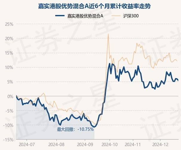 证券之星消息,12月20日,嘉实港股优势混合A最新单位净值为0.8814元,累计净值为0.8814元,较前一交易日下跌0.45%。历史数据显示该基金近1个月上涨0.46%,近3个月上涨12.52%,近6个月上涨5.42%,近1年上涨26.86%。该基金近6个月的累计收益率走势如下图: