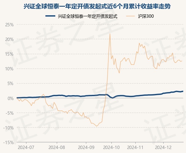 证券之星消息,12月23日,兴证全球恒泰一年定开债发起式最新单位净值为1.0253元,累计净值为1.0922元,较前一交易日上涨0.06%。历史数据显示该基金近1个月上涨2.11%,近3个月上涨2.18%,近6个月上涨3.24%,近1年上涨6.19%。该基金近6个月的累计收益率走势如下图: