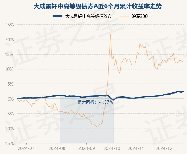 证券之星消息,12月23日,大成景轩中高等级债券A最新单位净值为1.1169元,累计净值为1.1619元,较前一交易日上涨0.07%。历史数据显示该基金近1个月上涨1.6%,近3个月上涨1.47%,近6个月上涨2.4%,近1年上涨6.23%。该基金近6个月的累计收益率走势如下图: