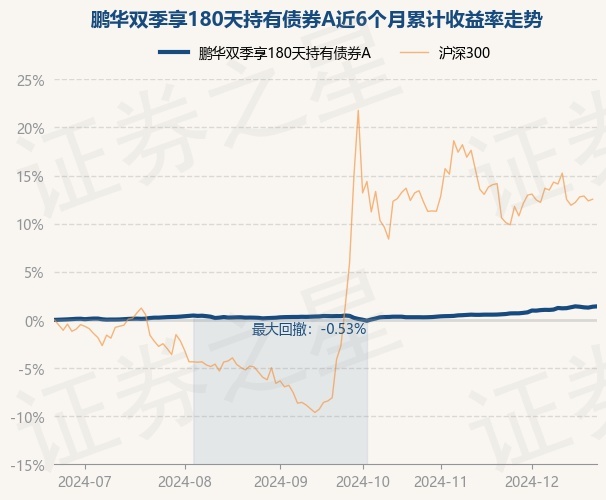 证券之星消息,12月23日,鹏华双季享180天持有债券A最新单位净值为1.096元,累计净值为1.096元,较前一交易日上涨0.04%。历史数据显示该基金近1个月上涨0.79%,近3个月上涨1.0%,近6个月上涨1.41%,近1年上涨2.88%。该基金近6个月的累计收益率走势如下图: