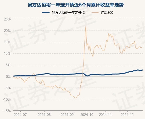 证券之星消息,12月23日,易方达恒裕一年定开债最新单位净值为1.054元,累计净值为1.223元,较前一交易日上涨0.04%。历史数据显示该基金近1个月上涨1.6%,近3个月上涨1.53%,近6个月上涨2.67%,近1年上涨7.31%。该基金近6个月的累计收益率走势如下图: