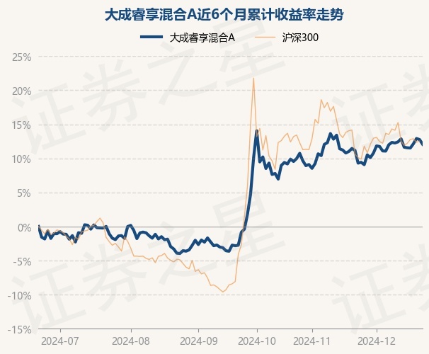证券之星消息,12月23日,大成睿享混合A最新单位净值为1.5172元,累计净值为1.7315元,较前一交易日下跌0.62%。历史数据显示该基金近1个月上涨2.53%,近3个月上涨15.24%,近6个月上涨12.07%,近1年上涨16.39%。该基金近6个月的累计收益率走势如下图: