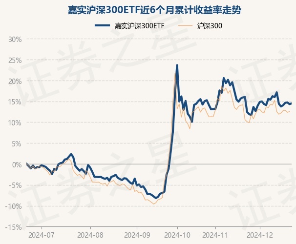 证券之星消息,12月23日,嘉实沪深300ETF最新单位净值为4.1241元,累计净值为1.8643元,较前一交易日上涨0.15%。历史数据显示该基金近1个月上涨1.82%,近3个月上涨22.62%,近6个月上涨14.49%,近1年上涨20.53%。该基金近6个月的累计收益率走势如下图: