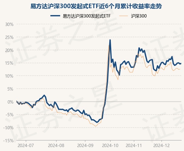 证券之星消息,12月23日,易方达沪深300发起式ETF最新单位净值为3.8626元,累计净值为1.9706元,较前一交易日上涨0.15%。历史数据显示该基金近1个月上涨1.85%,近3个月上涨22.69%,近6个月上涨14.7%,近1年上涨21.02%。该基金近6个月的累计收益率走势如下图: