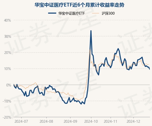 证券之星消息,12月23日,华宝中证医疗ETF最新单位净值为0.3344元,累计净值为1.0032元,较前一交易日下跌1.09%。历史数据显示该基金近1个月下跌0.12%,近3个月上涨24.31%,近6个月上涨9.6%,近1年下跌12.44%。该基金近6个月的累计收益率走势如下图: