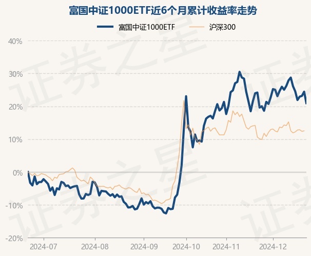 证券之星消息,12月23日,富国中证1000ETF最新单位净值为2.476元,累计净值为0.8717元,较前一交易日下跌2.8%。历史数据显示该基金近1个月上涨1.14%,近3个月上涨36.23%,近6个月上涨20.96%,近1年上涨7.39%。该基金近6个月的累计收益率走势如下图: