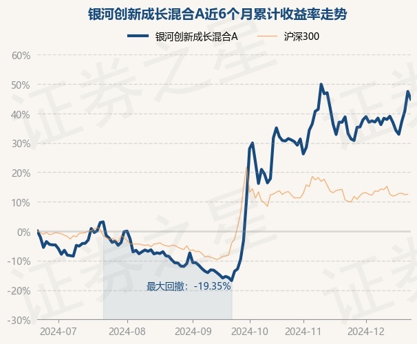 证券之星消息,12月23日,银河创新成长混合A最新单位净值为6.3045元,累计净值为6.3045元,较前一交易日下跌1.77%。历史数据显示该基金近1个月上涨8.81%,近3个月上涨74.15%,近6个月上涨44.86%,近1年上涨42.49%。该基金近6个月的累计收益率走势如下图: