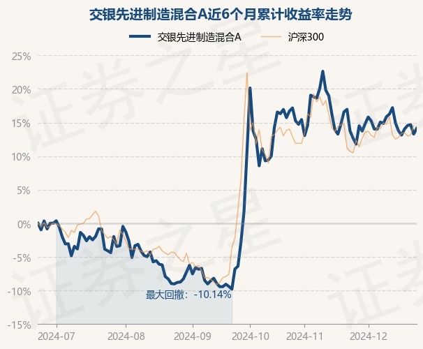 证券之星消息,12月24日,交银先进制造混合A最新单位净值为3.6731元,累计净值为5.1241元,较前一交易日上涨0.75%。历史数据显示该基金近1个月上涨0.35%,近3个月上涨22.45%,近6个月上涨14.13%,近1年上涨6.79%。该基金近6个月的累计收益率走势如下图: