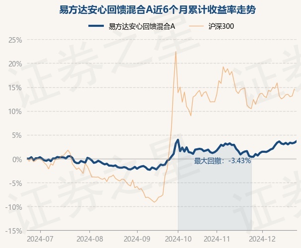证券之星消息,12月24日,易方达安心回馈混合A最新单位净值为2.354元,累计净值为2.354元,较前一交易日上涨0.3%。历史数据显示该基金近1个月上涨3.06%,近3个月上涨4.11%,近6个月上涨3.65%,近1年上涨5.66%。该基金近6个月的累计收益率走势如下图: