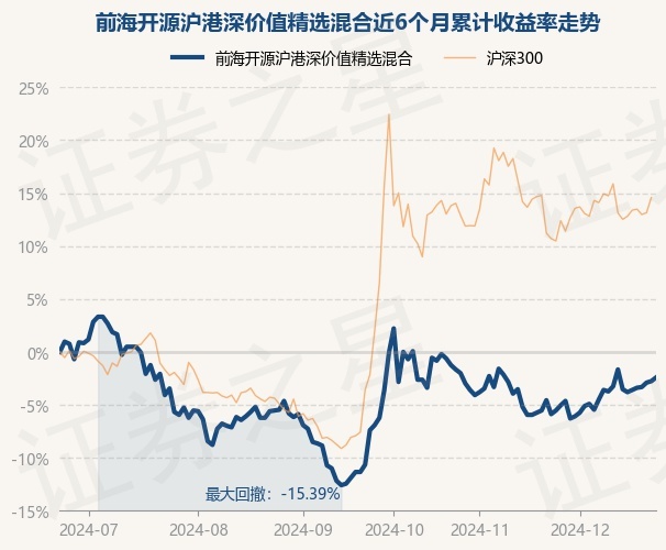 证券之星消息,12月24日,前海开源沪港深价值精选混合最新单位净值为1.411元,累计净值为1.581元,较前一交易日上涨0.36%。历史数据显示该基金近1个月上涨3.67%,近3个月上涨5.38%,近6个月下跌2.42%,近1年上涨12.61%。该基金近6个月的累计收益率走势如下图: