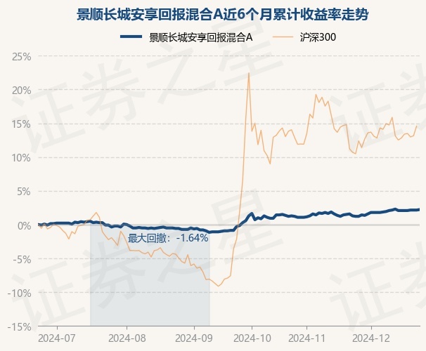 证券之星消息,12月24日,景顺长城安享回报混合A最新单位净值为1.427元,累计净值为1.624元,较前一交易日上涨0.07%。历史数据显示该基金近1个月上涨0.92%,近3个月上涨2.51%,近6个月上涨2.22%,近1年上涨5.56%。该基金近6个月的累计收益率走势如下图: