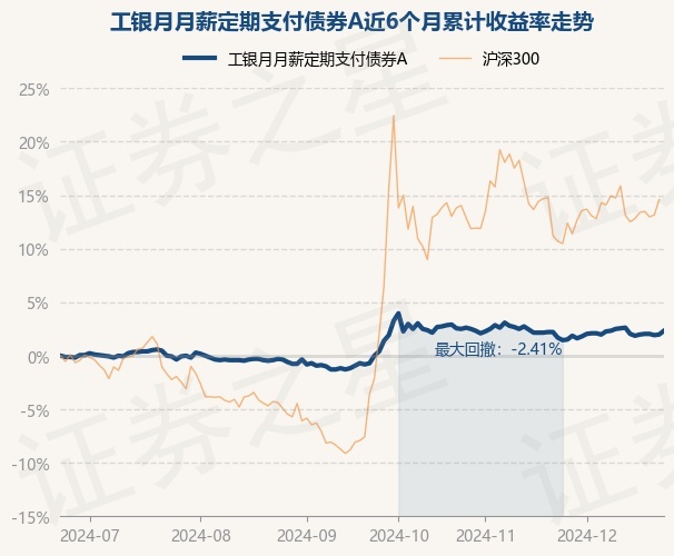 证券之星消息,12月24日,工银月月薪定期支付债券A最新单位净值为1.756元,累计净值为1.756元,较前一交易日上涨0.34%。历史数据显示该基金近1个月上涨0.63%,近3个月上涨2.33%,近6个月上涨2.33%,近1年上涨6.49%。该基金近6个月的累计收益率走势如下图: