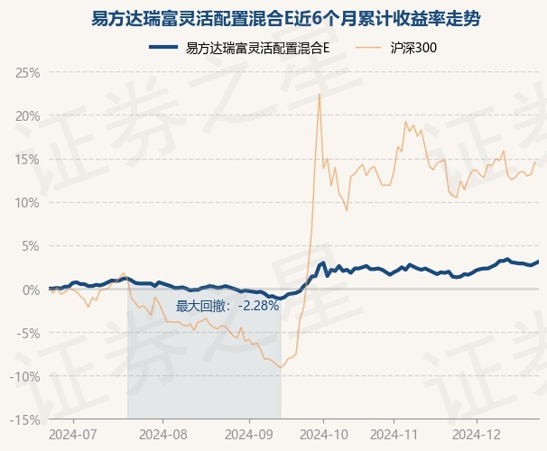 证券之星消息,12月24日,易方达瑞富灵活配置混合E最新单位净值为1.428元,累计净值为1.568元,较前一交易日上涨0.21%。历史数据显示该基金近1个月上涨1.71%,近3个月上涨2.81%,近6个月上涨3.1%,近1年上涨9.34%。该基金近6个月的累计收益率走势如下图: