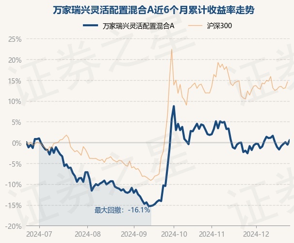 证券之星消息,12月24日,万家瑞兴灵活配置混合A最新单位净值为1.0278元,累计净值为1.6678元,较前一交易日上涨1.06%。历史数据显示该基金近1个月上涨2.9%,近3个月上涨12.1%,近6个月上涨0.53%,近1年上涨6.33%。该基金近6个月的累计收益率走势如下图: