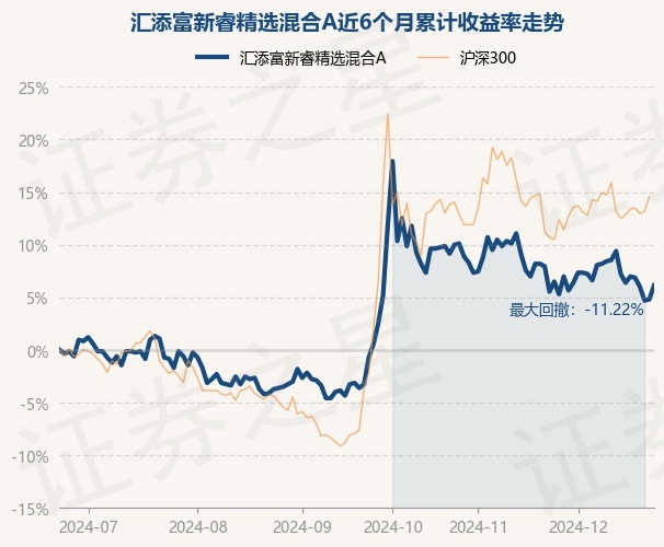 证券之星消息,12月24日,汇添富新睿精选混合A最新单位净值为0.882元,累计净值为1.256元,较前一交易日上涨1.26%。历史数据显示该基金近1个月上涨0.57%,近3个月上涨6.91%,近6个月上涨6.14%,近1年上涨5.88%。该基金近6个月的累计收益率走势如下图: