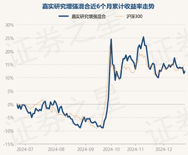 证券之星消息,12月24日,嘉实研究增强混合最新单位净值为1.336元,累计净值为1.336元,较前一交易日上涨0.75%。历史数据显示该基金近1个月上涨0.91%,近3个月上涨19.93%,近6个月上涨12.46%,近1年上涨5.03%。该基金近6个月的累计收益率走势如下图: