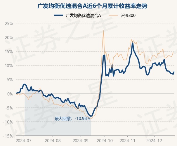 证券之星消息,12月24日,广发均衡优选混合A最新单位净值为1.0318元,累计净值为1.0318元,较前一交易日上涨0.92%。历史数据显示该基金近1个月上涨0.97%,近3个月上涨10.47%,近6个月上涨7.83%,近1年上涨20.12%。该基金近6个月的累计收益率走势如下图: