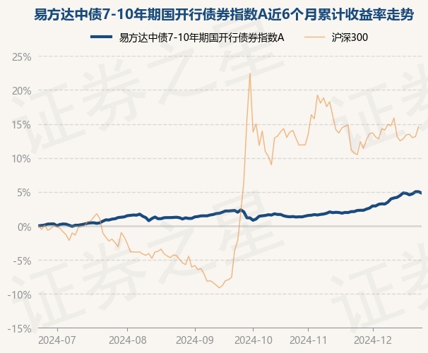 证券之星消息,12月24日,易方达中债7-10年期国开行债券指数A最新单位净值为1.3189元,累计净值为1.404元,较前一交易日下跌0.2%。历史数据显示该基金近1个月上涨2.66%,近3个月上涨2.76%,近6个月上涨4.82%,近1年上涨9.63%。该基金近6个月的累计收益率走势如下图: