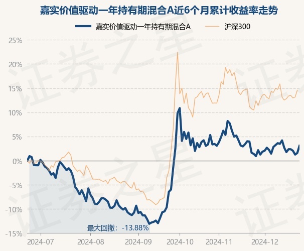 证券之星消息,12月24日,嘉实价值驱动一年持有期混合A最新单位净值为0.9429元,累计净值为0.9429元,较前一交易日上涨1.47%。历史数据显示该基金近1个月上涨1.43%,近3个月上涨10.19%,近6个月上涨3.07%,近1年上涨18.25%。该基金近6个月的累计收益率走势如下图: