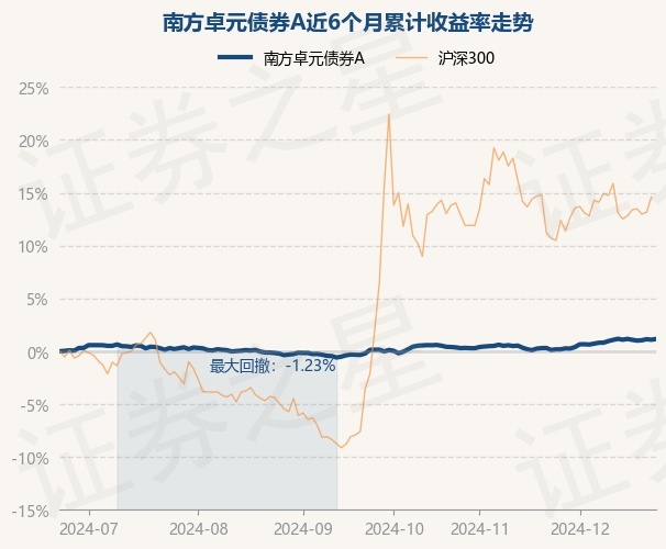 证券之星消息,12月24日,南方卓元债券A最新单位净值为1.083元,累计净值为1.3604元,较前一交易日上涨0.06%。历史数据显示该基金近1个月上涨1.04%,近3个月上涨1.03%,近6个月上涨1.16%,近1年上涨4.83%。该基金近6个月的累计收益率走势如下图: