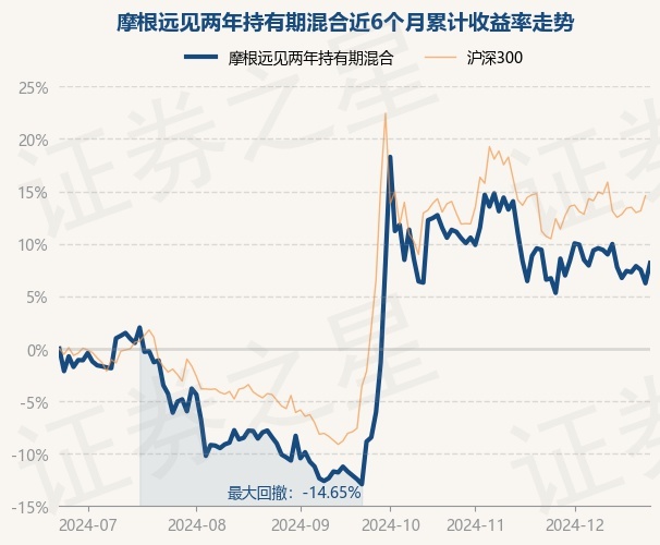 证券之星消息,12月24日,摩根远见两年持有期混合最新单位净值为0.7283元,累计净值为0.7283元,较前一交易日上涨1.82%。历史数据显示该基金近1个月上涨1.49%,近3个月上涨18.67%,近6个月上涨8.17%,近1年上涨18.19%。该基金近6个月的累计收益率走势如下图: