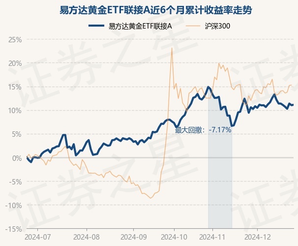 证券之星消息,12月25日,易方达黄金ETF联接A最新单位净值为2.0645元,累计净值为2.0645元,较前一交易日上涨0.07%。历史数据显示该基金近1个月下跌0.04%,近3个月上涨3.17%,近6个月上涨11.11%,近1年上涨26.7%。该基金近6个月的累计收益率走势如下图: