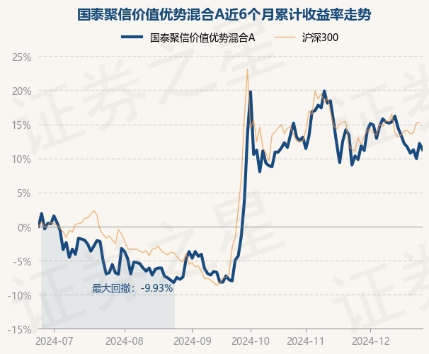 证券之星消息,12月25日,国泰聚信价值优势混合A最新单位净值为1.936元,累计净值为2.934元,较前一交易日下跌0.82%。历史数据显示该基金近1个月上涨0.83%,近3个月上涨16.28%,近6个月上涨11.26%,近1年下跌3.54%。该基金近6个月的累计收益率走势如下图:
