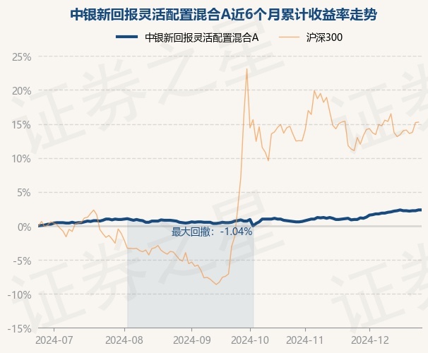 证券之星消息,12月25日,中银新回报灵活配置混合A最新单位净值为1.746元,累计净值为2.066元,较前一交易日上涨0.0%。历史数据显示该基金近1个月上涨1.39%,近3个月上涨1.57%,近6个月上涨2.34%,近1年上涨6.72%。该基金近6个月的累计收益率走势如下图: