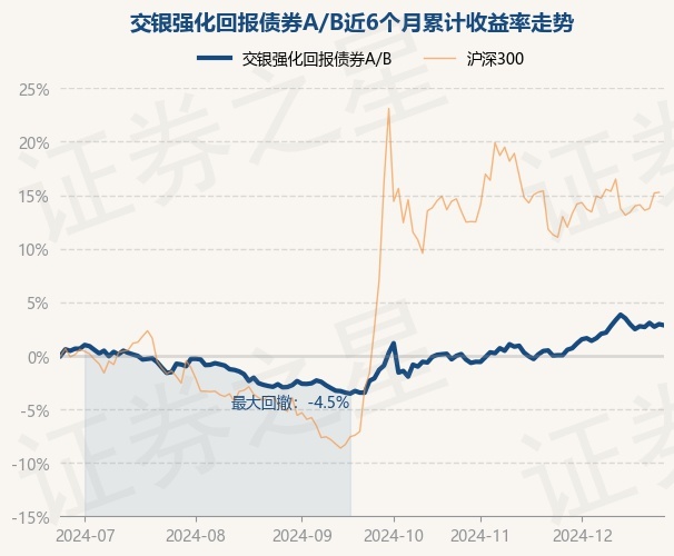证券之星消息,12月25日,交银强化回报债券A/B最新单位净值为1.1429元,累计净值为1.3509元,较前一交易日下跌0.1%。历史数据显示该基金近1个月上涨2.8%,近3个月上涨5.07%,近6个月上涨2.84%,近1年上涨4.39%。该基金近6个月的累计收益率走势如下图: