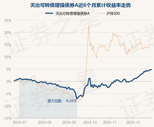 证券之星消息,12月25日,天治可转债增强债券A最新单位净值为1.5178元,累计净值为1.5178元,较前一交易日上涨0.01%。历史数据显示该基金近1个月上涨4.88%,近3个月上涨7.14%,近6个月上涨4.73%,近1年上涨6.21%。该基金近6个月的累计收益率走势如下图:
