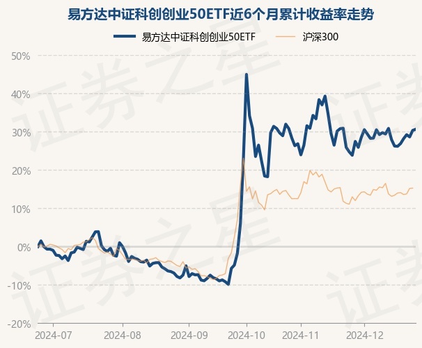 证券之星消息,12月25日,易方达中证科创创业50ETF最新单位净值为0.5806元,累计净值为0.5806元,较前一交易日上涨0.22%。历史数据显示该基金近1个月上涨4.73%,近3个月上涨37.29%,近6个月上涨30.65%,近1年上涨21.69%。该基金近6个月的累计收益率走势如下图: