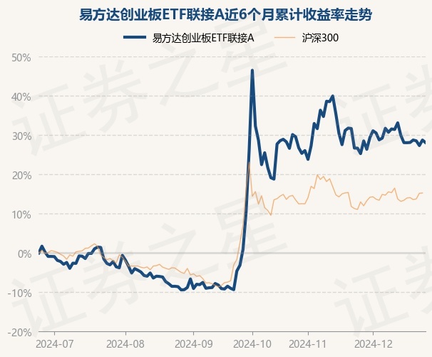 证券之星消息,12月25日,易方达创业板ETF联接A最新单位净值为2.2544元,累计净值为2.2544元,较前一交易日下跌0.52%。历史数据显示该基金近1个月上涨1.11%,近3个月上涨32.24%,近6个月上涨28.09%,近1年上涨19.34%。该基金近6个月的累计收益率走势如下图: