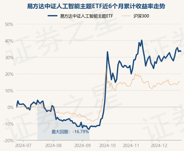 证券之星消息,12月25日,易方达中证人工智能主题ETF最新单位净值为0.9395元,累计净值为0.9395元,较前一交易日下跌0.37%。历史数据显示该基金近1个月上涨6.63%,近3个月上涨43.17%,近6个月上涨33.39%,近1年上涨27.6%。该基金近6个月的累计收益率走势如下图: